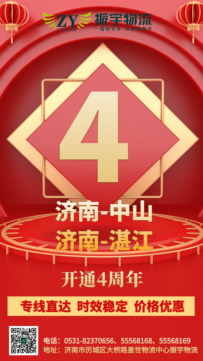 振宇物流集團(tuán)丨濟(jì)南-中山、湛江直達(dá)專線開通四周年,線路發(fā)貨優(yōu)惠中……