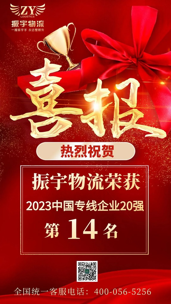 熱烈祝賀振宇物流榮獲2023中國專線企業(yè)20強第14名