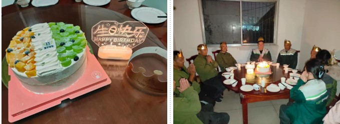 壽星們圍坐,燭光逐一亮起時(shí),有人閉目凝神,有人望向身側(cè)的同事,輕聲許下心愿。從許愿時(shí)的真誠,到吹蠟燭時(shí)的歡呼,再到飯桌上的暢聊,這場生日會(huì)傳遞的不僅是溫暖,更是振宇物流“以人為本”的核心價(jià)值觀。它讓員工感受到企業(yè)不只是工作的平臺(tái),更是并肩前行的“家人”,成長不只是個(gè)人的奮斗,更有團(tuán)隊(duì)的托舉。