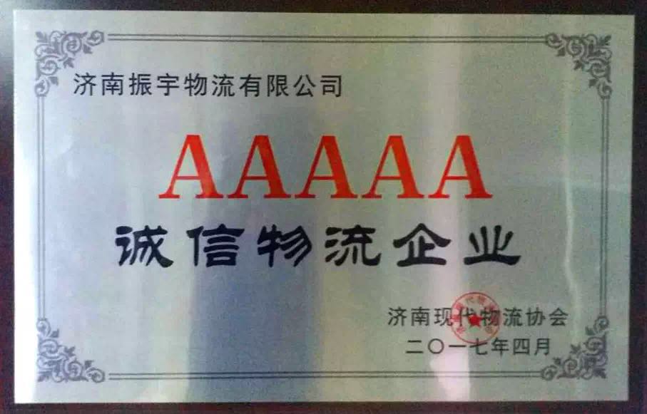 2017年5月10日,濟南現(xiàn)代物流協(xié)會2017年年會暨表彰大會在濟南祥云酒店隆重召開。經過嚴格評選,濟南振宇物流榮獲“5A級誠信物流企業(yè)”、“濟南市優(yōu)秀物流企業(yè)”榮譽稱號。