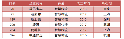 另外,排名前100的企業(yè)有第20位的福佑卡車和第75位的運去哪。福佑卡車作為技術驅動型公路貨運平臺,近日已赴美遞交IPO申請,計劃在納斯達克上市。而一站式國際物流在線服務平臺于前日宣布獲得中信資本領投,襄禾資本和老股東跟投的新一輪融資,D1輪累計融資額達1.5億美元,總融資金額超過了3億美元。