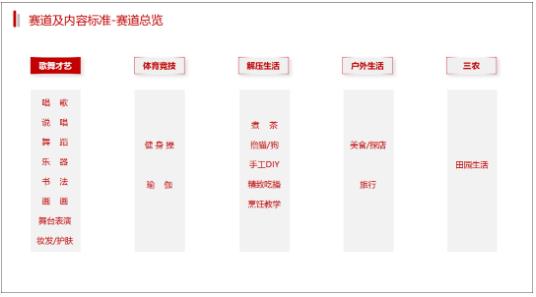 根據(jù)京東推出的主播招募政策,面向歌舞才藝、體育競(jìng)技、解壓生活、戶(hù)外生活、三農(nóng)五個(gè)大賽道下的17個(gè)細(xì)分賽道招募內(nèi)容型主播。從政策細(xì)則來(lái)看,京東對(duì)每個(gè)細(xì)分賽道都做了具體的“內(nèi)容標(biāo)準(zhǔn)”要求,包括直播場(chǎng)景、音畫(huà)質(zhì)量、主播狀態(tài)、直播內(nèi)容等等。